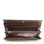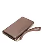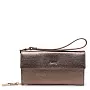 Элегантное женское портмоне с украшением в виде фирменного брелока рассчитано на полную купюру. Аксессуар из металлизированной натуральной кожи бронзового цвета закрывается на кнопку. Внутри два отделения, два открытых кармана и один карман на молнии для мелочи, а также десять слотов для пластиковых и визитных карточек. В комплекте прилагаются фирменная коробочка и съемный ремешок для запястья.