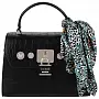 Гармонично дополнить стильный повседневный образ поможет сумка-сэтчел с отделкой под крокодила и оригинальным декором. Черный аксессуар закрывается с помощью откидного клапана на магнитной кнопке. Внутреннее отделение дополняют кармашки-слоты для пластиковых карточек, открытый карман и карман на молнии. На задней стенке снаружи размещен карман на молнии. В комплект входят съемный регулируемый ремешок для плеча и украшение в виде платка с принтом.