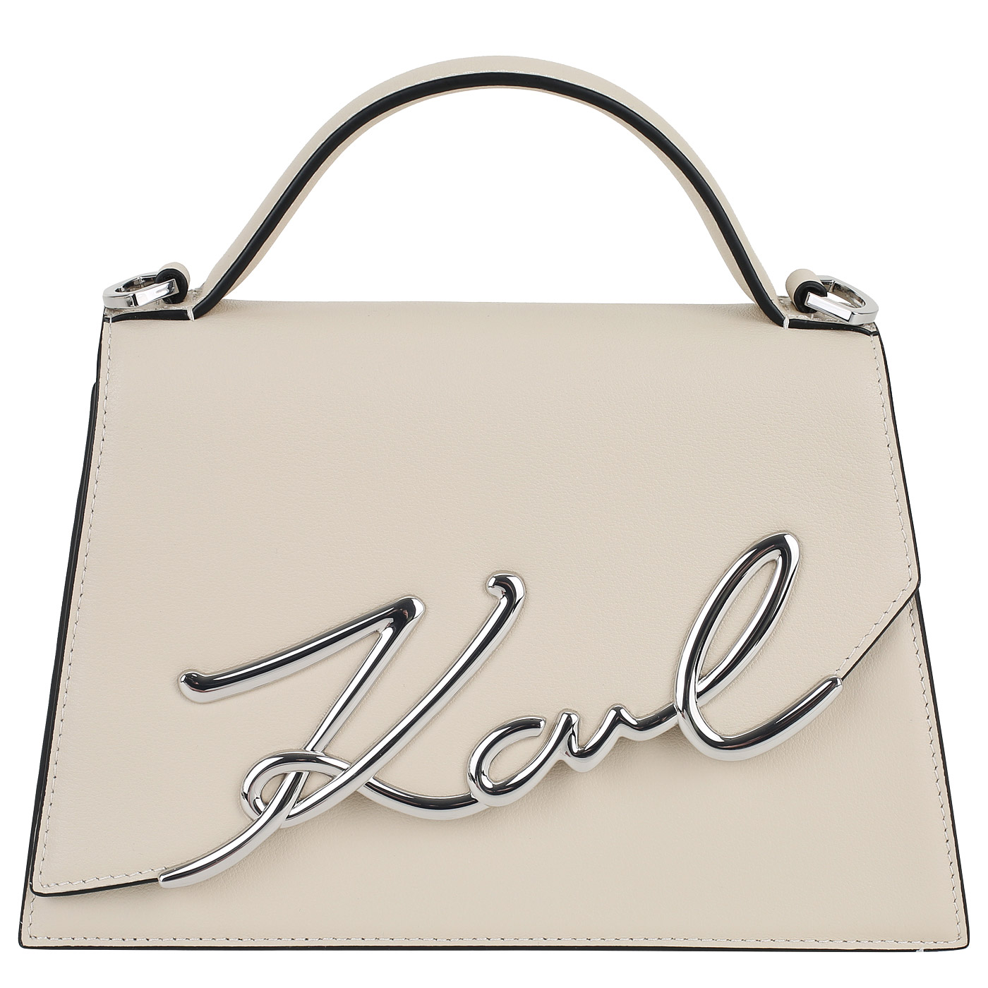 Кожаная сумка Karl Lagerfeld Signature 240W3003/160_pc - 2000558646468 бежевый натуральная кожа 25,5 x 17 x 11 Цена 30716 руб. купить в интернет-магазине PanChemodan.ru в Новокузнецке
