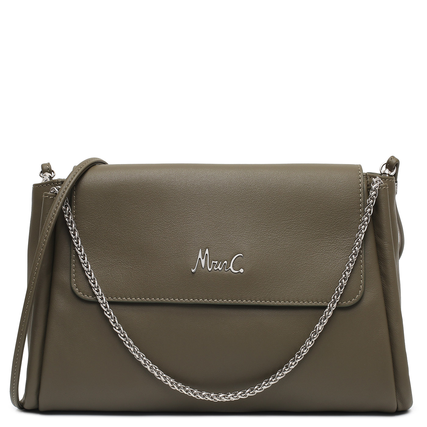 Кожаная сумка с ручками-цепочками Marina Creazioni 7042_oliva_pc - 2000558710657 оливковый натуральная кожа 29,5 x 17,5 x 7,5 Цена 13190 руб. купить в интернет-магазине PanChemodan.ru в Новокузнецке